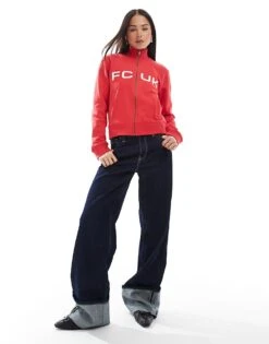 French Connection FCUK Zip Through Jersey With Slogan In Black For Women