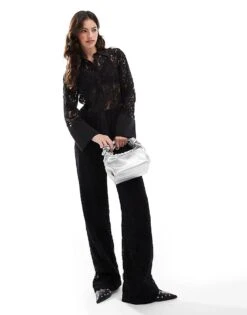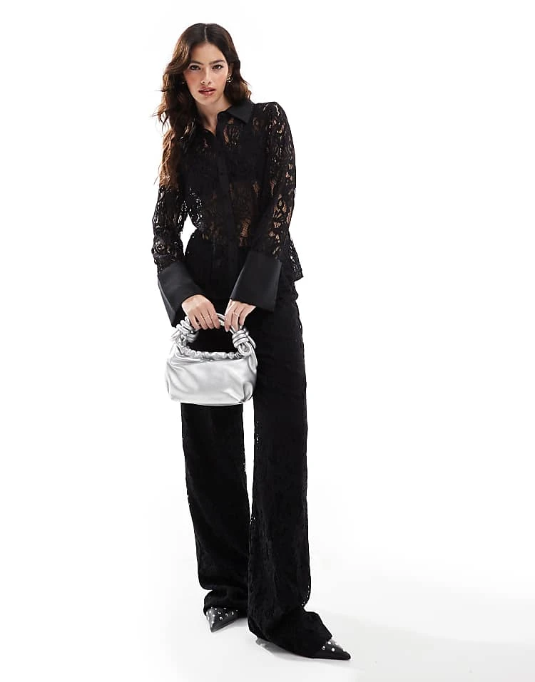 French Connection Sheer Lace Co-ord In Black